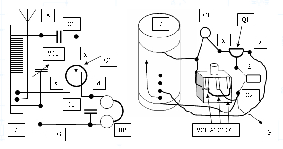 参考までに、FET検波ラジオ( 2N5484を使用 )の回路例を紹介します。