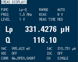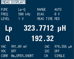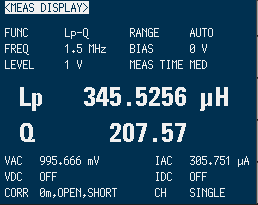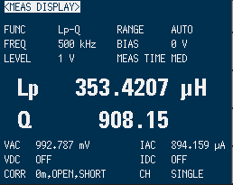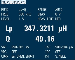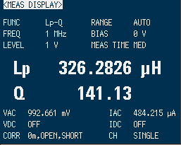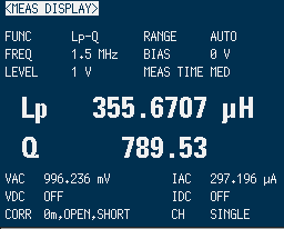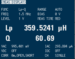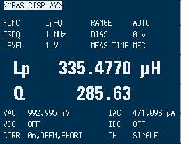 比較するにあたって重要なのは、実際に使用する周波数でのインダクタンスとコイルの品質を評価するQ値の測定が