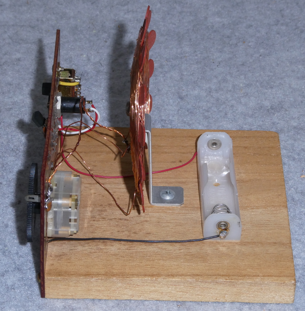 ※オリジナルのポリ・バリコンは260PF/2連だったのかも。 340PF/2連と交換して420kHzまで同調するようになりました。