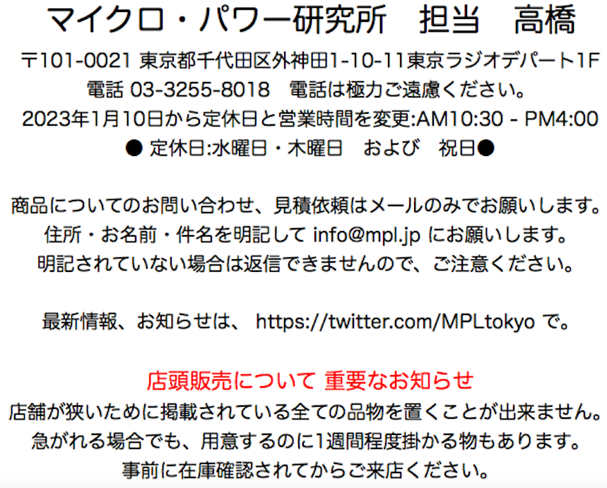 特徴:一人で切り盛りしている日本一小さなマイクロ波&高周波パーツの販売店です。