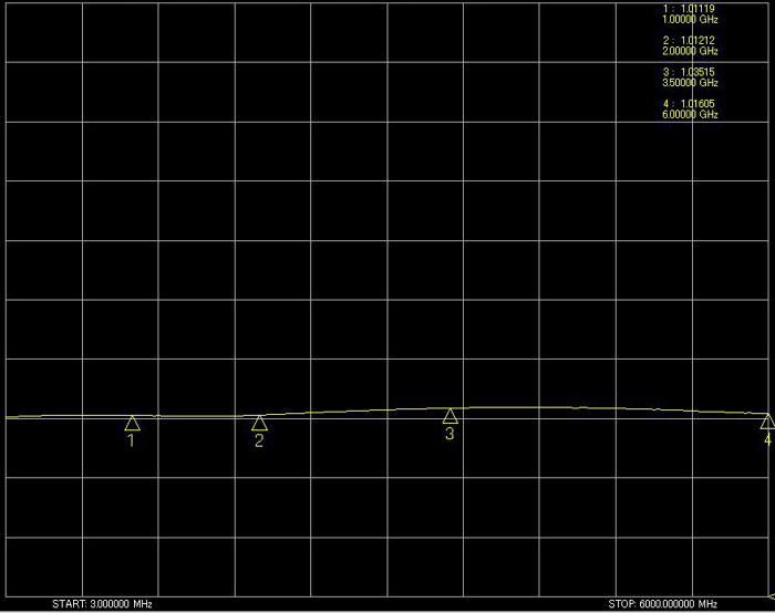 VSWR 1GHz/1.01119 2GHz/1.01212 3.5GHz/1.03515 6GHz/1.01605