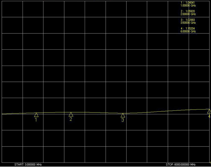 VSWR 1GHz/1.04041 2GHz/1.05920 3.5GHz/1.02983 6GHz/1.15204