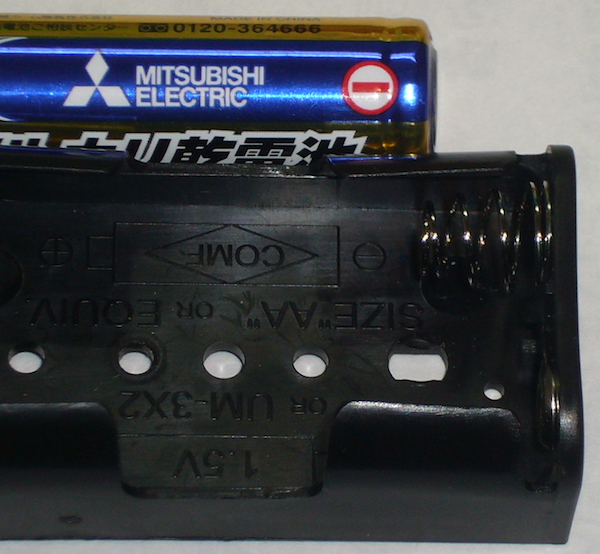 電池のマイナス( - )は、電池ホルダーのバネ側に入れます。