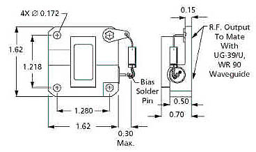周波数:34.5 - 35.4GHz 出力電力:113 - 125mW以上 出力導波管:UG-599/U( 角型フランジ