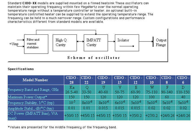 準ミリ波・ミリ波のガン発振器・インパット発振器の特注も可能です。 150GHz程度まで可能です。