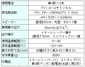 AM / FM( 76 -108MHz )の2バンドで、電池とイヤホンまで付いています。 もちろん、未開封なのでパッケージ入りです。
