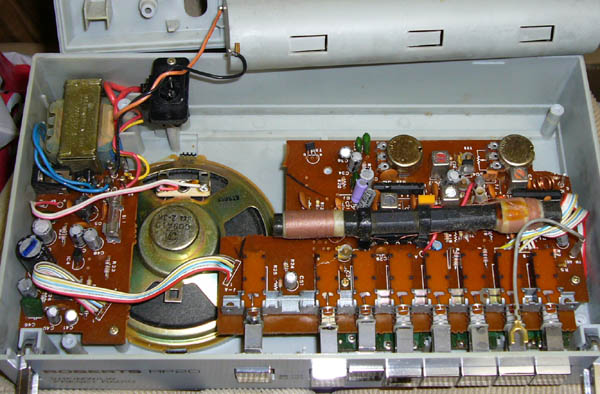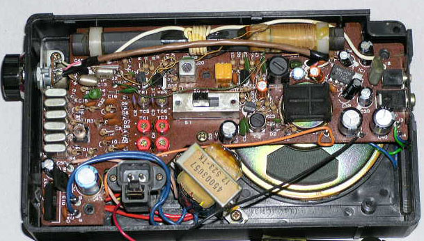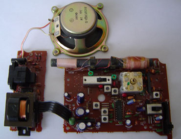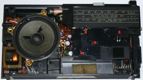 内部の様子 フィリップス製のAM/FMラジオICが使われていた。
