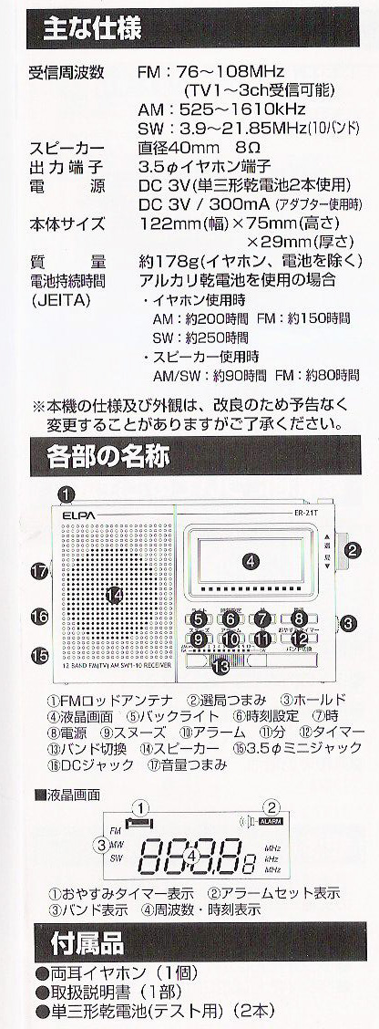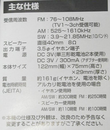 AM / FM / TV音声ラジオ 2006年9月 石丸電気の在庫処分セールで\6,237でした。