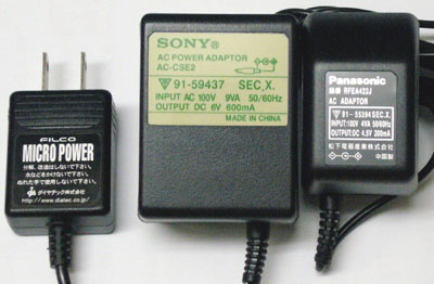 一般的なACアダプターであるSONY製AC-E455D(4.5V 0.5A )と比較してみました。