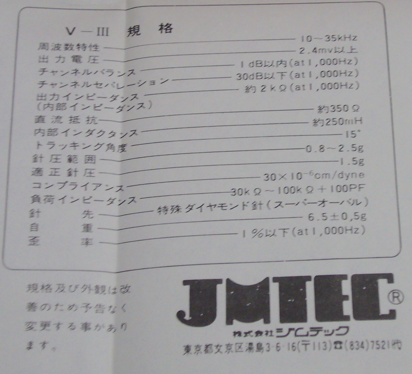JMTEC V-U PROFESSIONAL MM型カートリッジ 新品・未使用・長期在庫品です。
