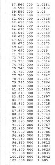 122MHz / 1.0062 1022MHz / 1.022 2.01GHz / 1.031 3.00GHz / 1.027