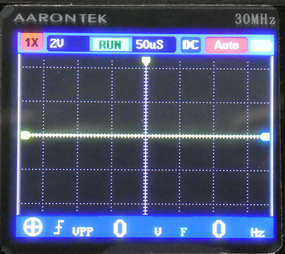電源投入直後から2秒ほど経過した出力波形 まだ変化は見られない。