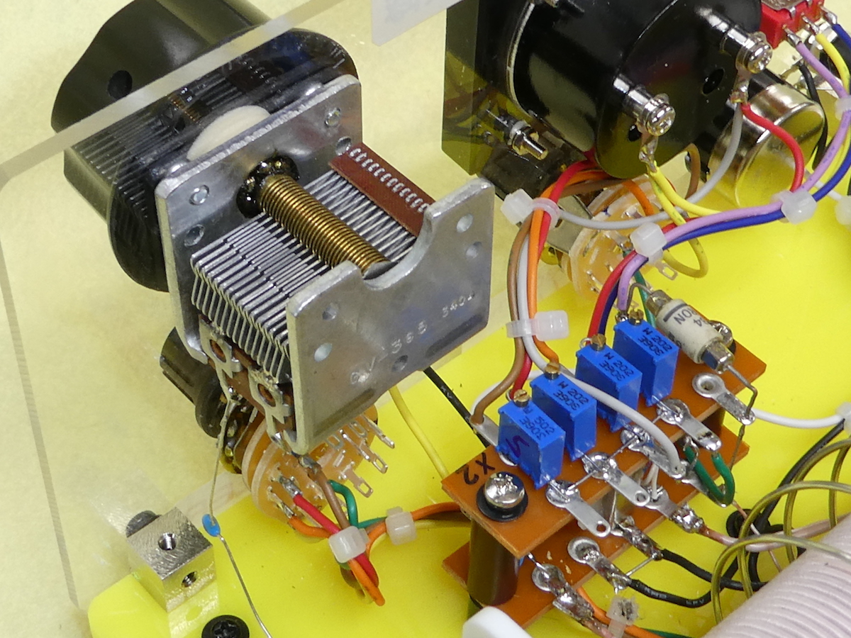 米国製400pFエア・バリコンに780pFのコンデンサを直列接続し、265pFの合成キャパシタンスを得ている。