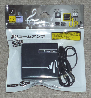 丸七で売られているボリューム・アンプ 105円( 単四電池2本は別売り )