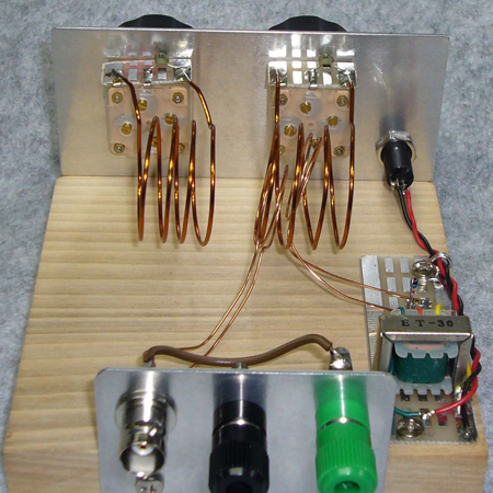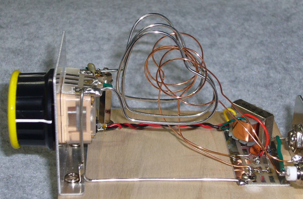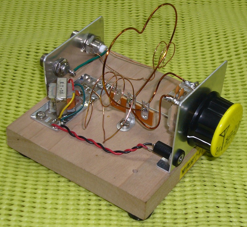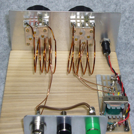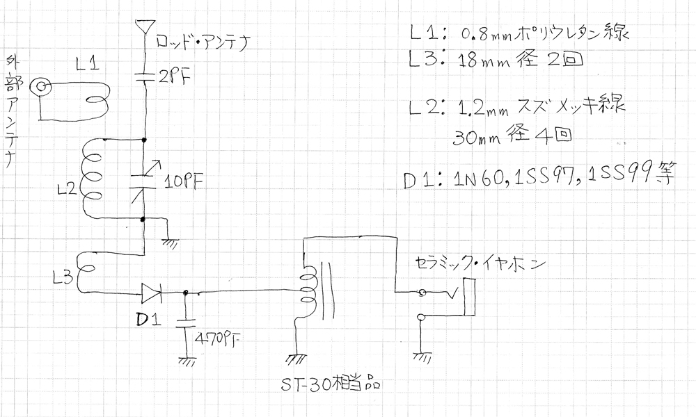 同調コイルは30mm径で4回( 1.2mm スズメッキ線 ) 10PF小型エア・バリコンでちょうど良いくらいに同調します。