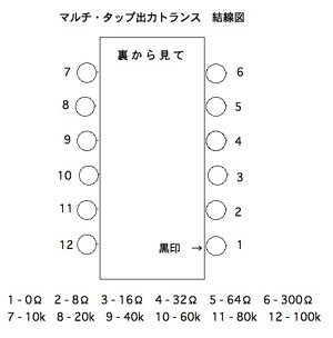 4,マルチタップ・トランス( 8Ω - 100kΩまで11タップ )