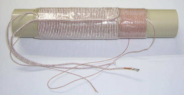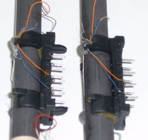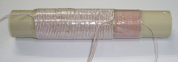 大きな誘起電圧を得る為に、180 X 10mmのフェライト・ロッドを5本束ねました。