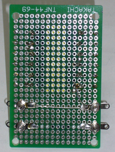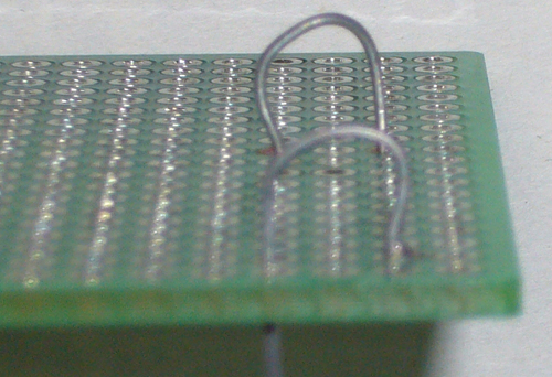 蛇の目基板に取り付ける場合は、基板の穴を1.5mm程度に拡げる方が無難です。