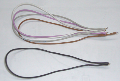 青 紫 灰 白 黒 茶のリード線をリング上にして両端を予備半田します。