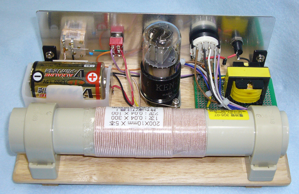 1.5V単一電池1本でフィラメントだけを点灯させて検波します。