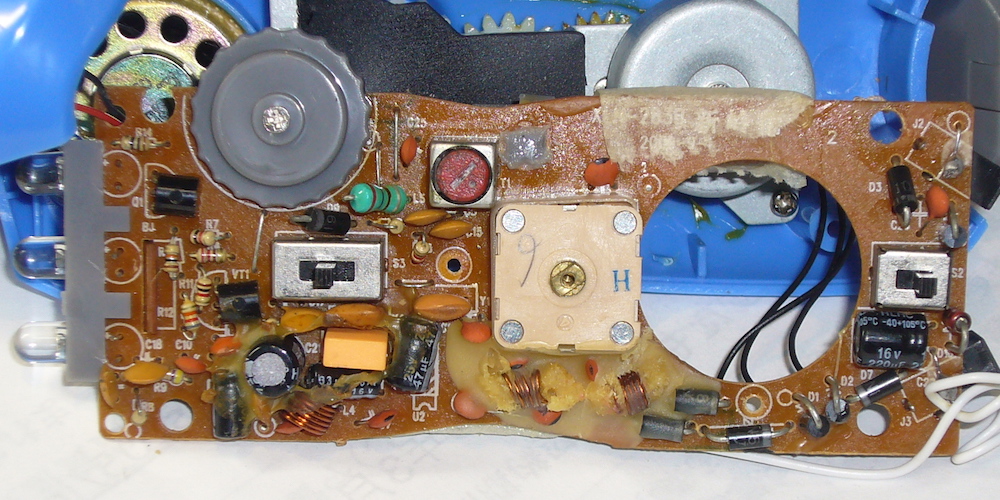 この値段で何とラジオはスーパーヘテロダイン方式! セラミック・フィルターも見える!