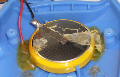 充電池はLEDとボリュームの下部分にあります。