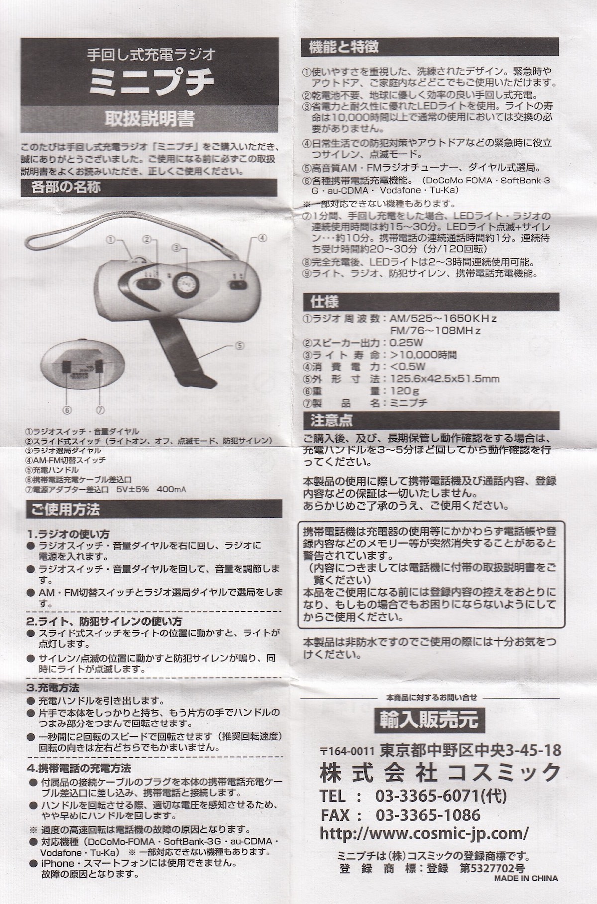 ラジオ以外の手回し発電も、LEDライトも、サイレンも動作しました。