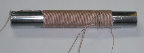 1次コイルと同様に20cmくらいの余裕を持たせ、20回程度巻きます。