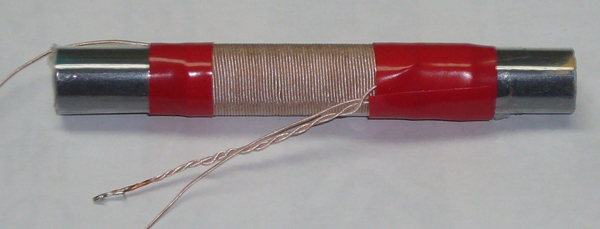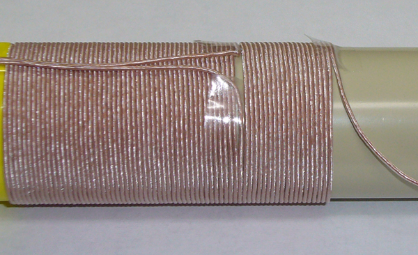 完成したコイル ほどけない様に、ビニール・テープで補強します。