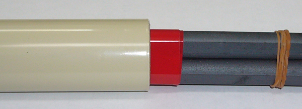 そのままパイプに入れると隙間があるので、両側にビニールテープを巻きます。