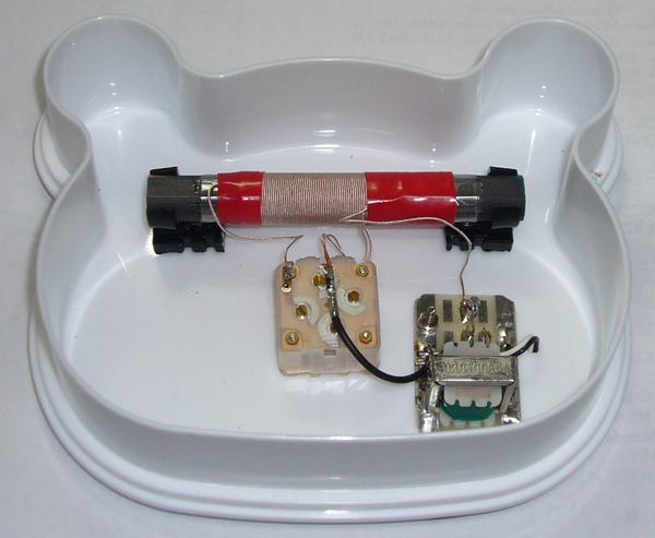 これにトリマと固定コンデンサを組み合わせて、各自の希望する周波数にセットします。