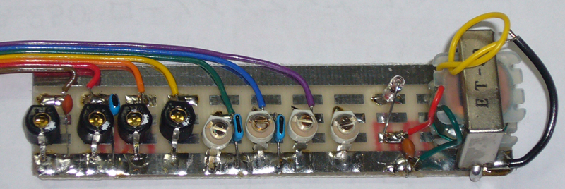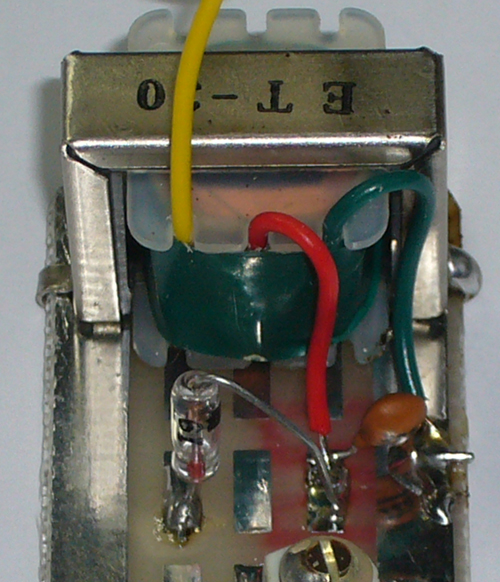 回路図でトランス(黄色)からイヤホン・ジャックの間に入れてください。