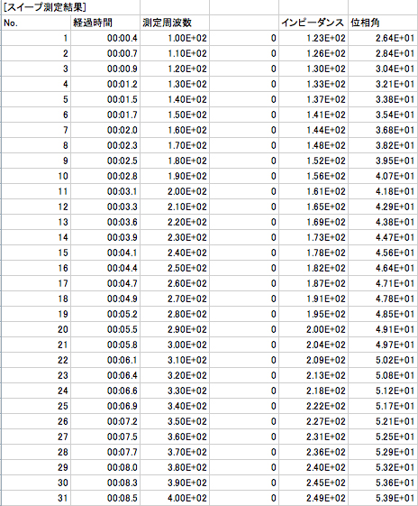 10Hz - 20kHzを1000ステップでイヤホンのインピーダンスを測定したい。