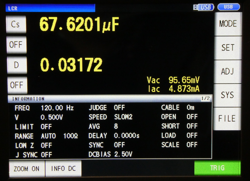 ※電解コンデンサの測定はメインでは無いので、DC電圧/DC電流バイアスユニットは所有していません。