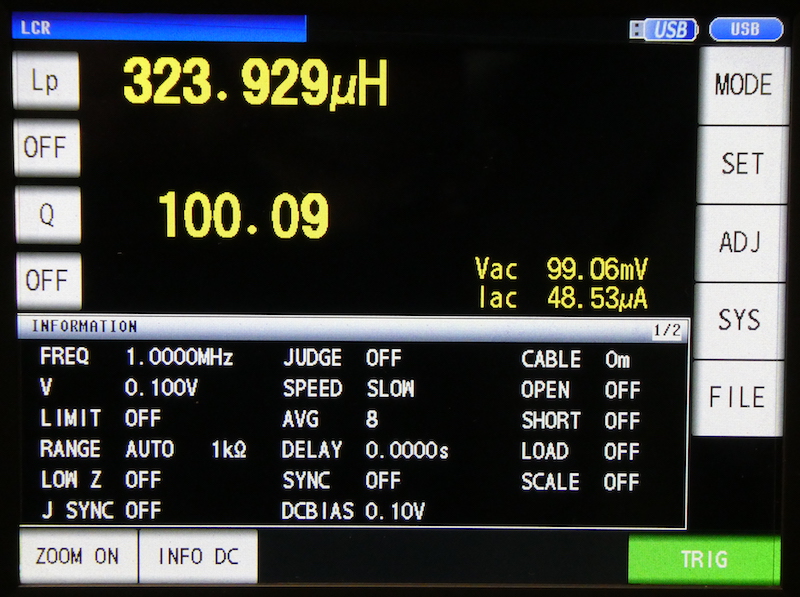 1MHzでインダクタンス( またはキャパシタンス )とQ値を測定したい。