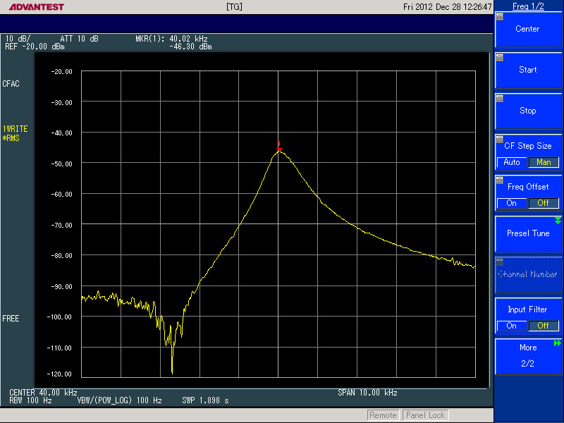 -5kHz離調時に約50dB +5kHz離調時に約40dB減衰します。