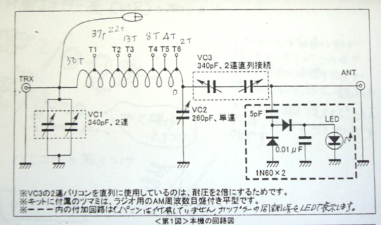 また、ANT側の点線部( 1N60ダイオードとLED )は送信用のモニターなので今回は不要です。