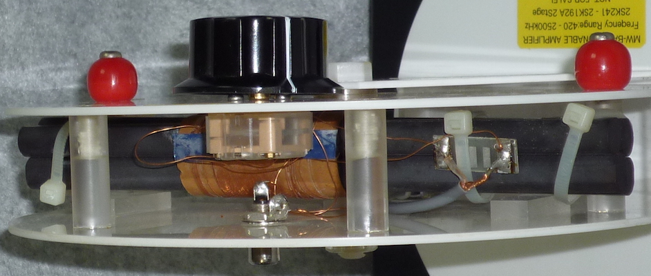 ※オリジナルのポリ・バリコンは260PF/2連だったのかも。 340PF/2連と交換して420kHzまで同調するようになりました。